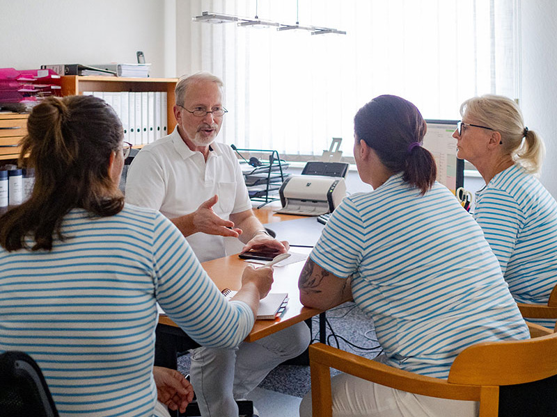 Den Schlüssel zu dieser maßgeschneiderten Versorgung hält bei uns nicht der Arzt in der Hand. Er liegt vielmehr bei den Mitarbeiterinnen, die mit Fachkompetenz und Empathie Ihr erster Kontakt sind, wenn Sie sich als Patient:in mit einem Problem an uns wenden. Unser Team kann durch hohe fachliche Qualifikation nicht nur Ihren Arztbesuch zielführend vorbereiten, sondern auch alle zur Verfügung stehenden Hilfsangebote für Sie koordinieren. Im Bereich der häuslichen Betreuung wird dies ganz besonders deutlich. Beispiele sind hier die Koordination von Pflege, die Unterstützung der häuslichen Betreeung durch unsere „Gemeindeschwester“ im Projekt AGNES, die Vermittlung von Tagespflege, von Unterstützung bei der Betreuung Demenzkranker oder von ambulanter Paliativversorgung (SAPV).